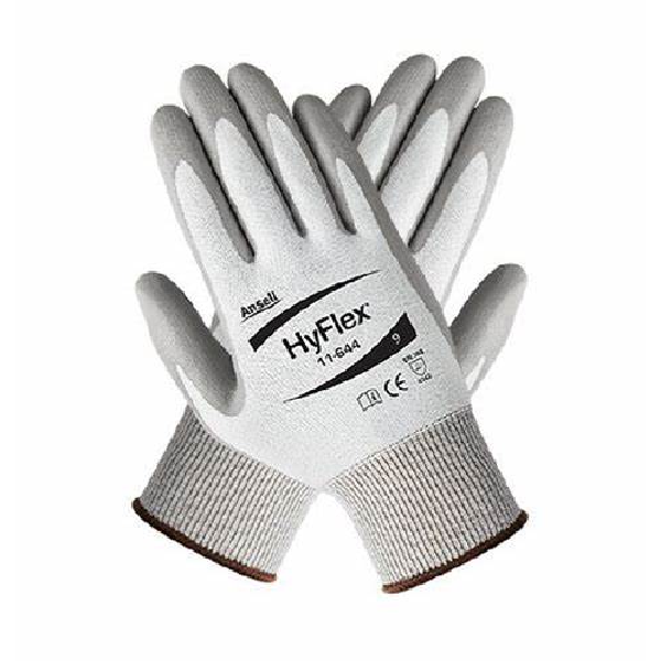 The HyFlex Cut Resistant Gloves feature 13G HDPE knitting and a PU coating for superior durability and protection. With Cut Level 5 resistance, they provide excellent defense against cuts, while also being abrasion-resistant, tear-resistant, and c