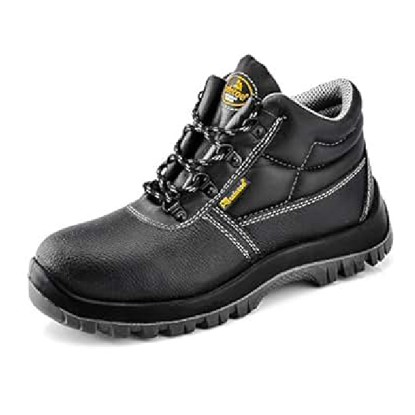 The UK Voltz Steel Toe Safety Boot offers exceptional protection and durability for demanding work environments. It is designed with anti-static and slip-resistant features, making it resistant to oil, acid, and alkali. The boot is equipped with an anti-puncture steel midsole and constructed from black genuine action leather for enhanced durability. It also features a PU and rubber injected sole with a 200J dual-density impact-resistant steel toe. Available in sizes 38-45, this safety boot is engineered for both comfort and superior performance in industrial settings.