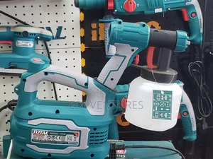 Voltage 230v - 50hz power 550w max flow850ml / min capacity of bottle 800ml dia of spray. This electric spray gun and airless paint sprayer provides fast, smooth, professional-quality painting and coating for walls, ceilings, furniture, fences, and vehicles. Ingco and Wadfow HVLP spray guns (450W–550W, 800ml–1000ml container, plastic and stainless steel tanks) atomise paint finely for drip-free application. Total spray guns (450W–530W) deliver adjustable spray patterns for wide coverage. Ingco 1000W airless paint sprayer provides high-pressure, high-volume coating for large surface areas. Cordless lithium-ion spray guns (20V) provide portable painting without a power cord. All guns include adjustable flow control and multiple spray patterns for latex, emulsion, lacquer, and stain.