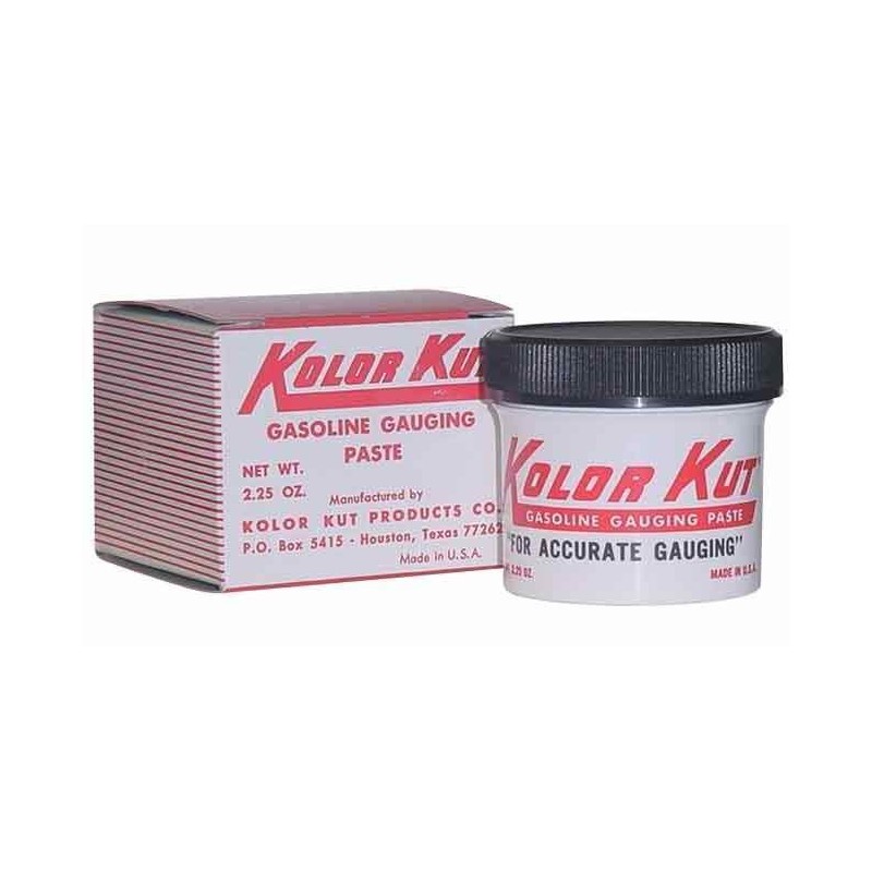 Kolor Kut Water Finding Paste, also known as Water Gauging Paste, is an essential tool for testing the presence of water in oil, diesel, petrol, gasoline, fuel oil, and kerosene tanks. The paste, which is brown in color, is applied to a weighted string or rod and dipped to the bottom of the tank. When the paste comes into contact with water, it immediately turns a brilliant red, allowing you to easily determine the depth of the water. The paste is supplied in 3oz tubes and is available singly or in boxes containing 12 tubes. Kolor Kut is designed to successfully gauge water content in all petroleum and hydrocarbons, as well as various chemicals including sulphuric acid, nitric acid, hydrochloric ammonia, soap solutions, and salt solutions. Made in the U.S.A., it has no expiry date and should be stored between 31?F and 115?F for optimal performance.