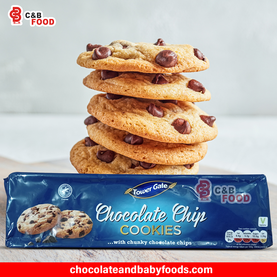 Indulge in the irresistible taste of Tower Gate Choc Chip Cookies. Perfectly baked for a crunchy outside and soft inside, these cookies are loaded with rich chocolate chips to satisfy every sweet craving. Ideal for snacking at home, sharing with f