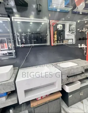 Introducing Vanity Cabinet Basin With Led Mirror — a professional-grade Ceramic Wash Hand Basin built for superior performance. Vanity Marble Cabinet basin with led mirror. Featuring vitreous china with high-gloss glaze finish and wall-hung, pedestal and counter-top mounting options, it delivers reliable results in demanding environments. With available in white, black and marble effect finishes, this product integrates seamlessly into any plumbing system. Designed for complete with waste trap, pop-up waste and tap holes, ensuring lasting performance and value. Trusted by plumbers, contractors and homeowners across Ghana.
