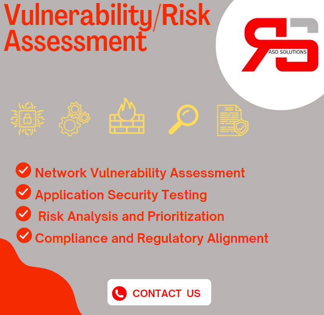 Aso Solutions prioritizes the security of your digital assets with our comprehensive Vulnerability/Risk Assessment service. Our expert team conducts a holistic evaluation of your organization's IT infrastructure, applications, and network to identify vulnerabilities and assess risks. Using advanced tools and methodologies, we perform detailed vulnerability scans, prioritize risks strategically, and tailor mitigation strategies to fortify your cybersecurity resilience. Ensure compliance with industry regulations, proactively address potential threats, and establish a foundation for continuous improvement. Aso Solutions ? where cybersecurity meets innovation.