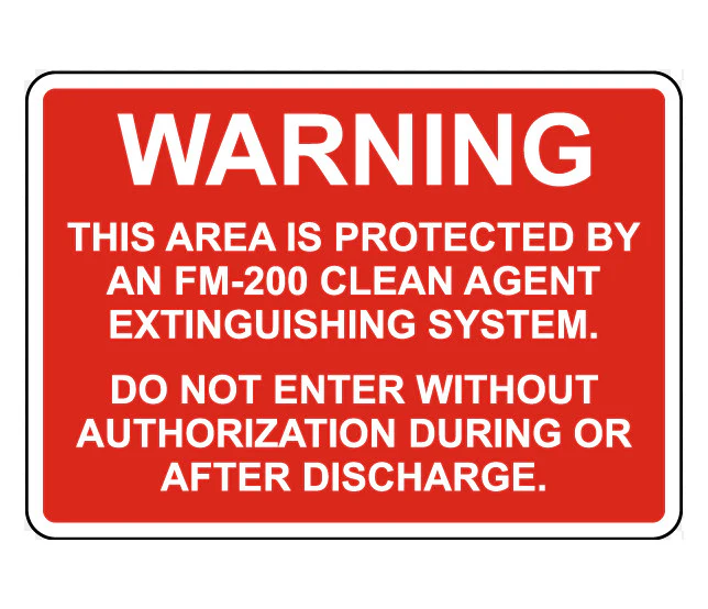 Enhance site safety with this bold caution sign notifying personnel that an area is protected by an FM-200 clean agent extinguishing system. This signage is essential for server rooms, data centers, electrical rooms, and any facility using gas-bas