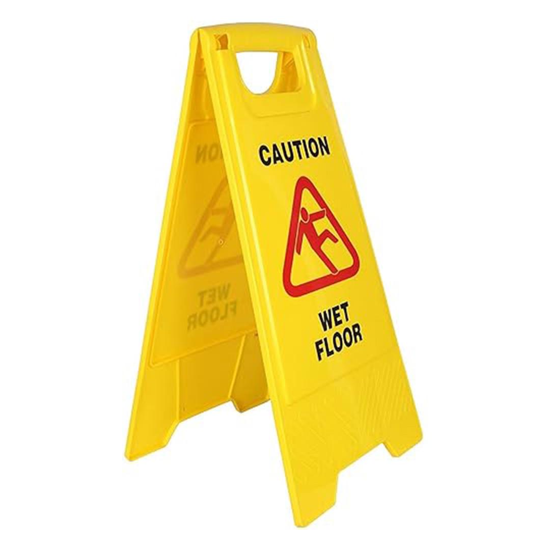 Its bright yellow color and bold warning graphics make it instantly recognizable, helping reduce the risk of slips and falls.